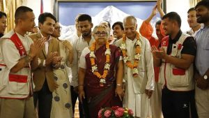شوشيلا كاركي هي أول رئيسة وزراء امرأة في تاريخ نيبال تم تعينها بعد هروب الحكومة السابقة