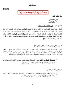 ناقش مجلس الوزراء ، اليوم الثلاثاء ، ورقتين ، الاولى مقدمة من الجهات الاتحادية المعنية والثانية من حكومة اقليم كردستان العراق بشأن موضوع تسليم ايرادات الاقليم ،النفطية وغير النفطية، وملف رواتب موظفيه وتوطينها