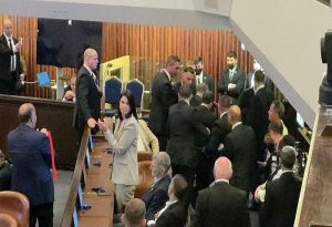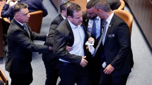 إخراج عضوي الكنيست أيمن عودة وعوفر كاسيف من الكنيست بعد مقاطعتهما خطاب ترامب
