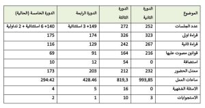هذه الدورة هي الأقل من حيث عدد الجلسات وقراءة القوانين مرة أولى وثانية وعدد القوانين المشرعة ومعدل الحضور وساعات العمل.